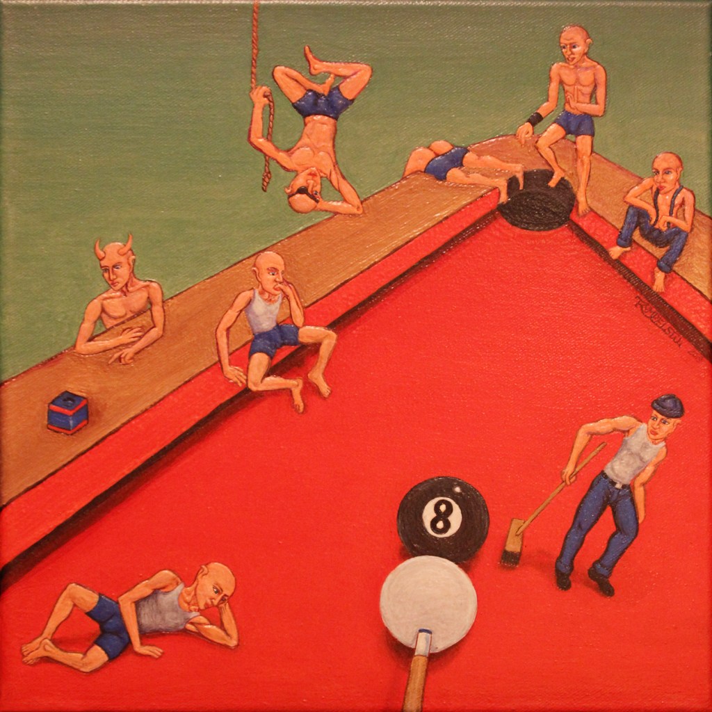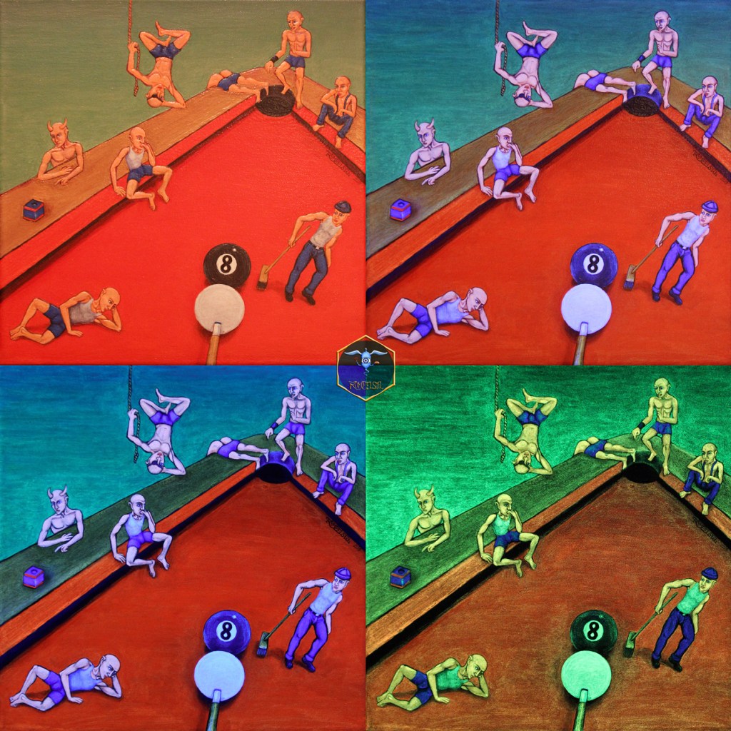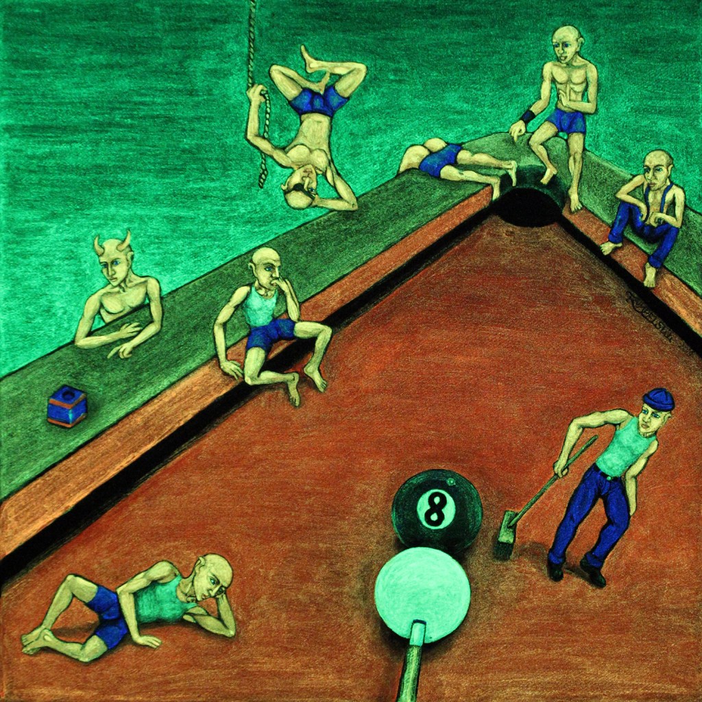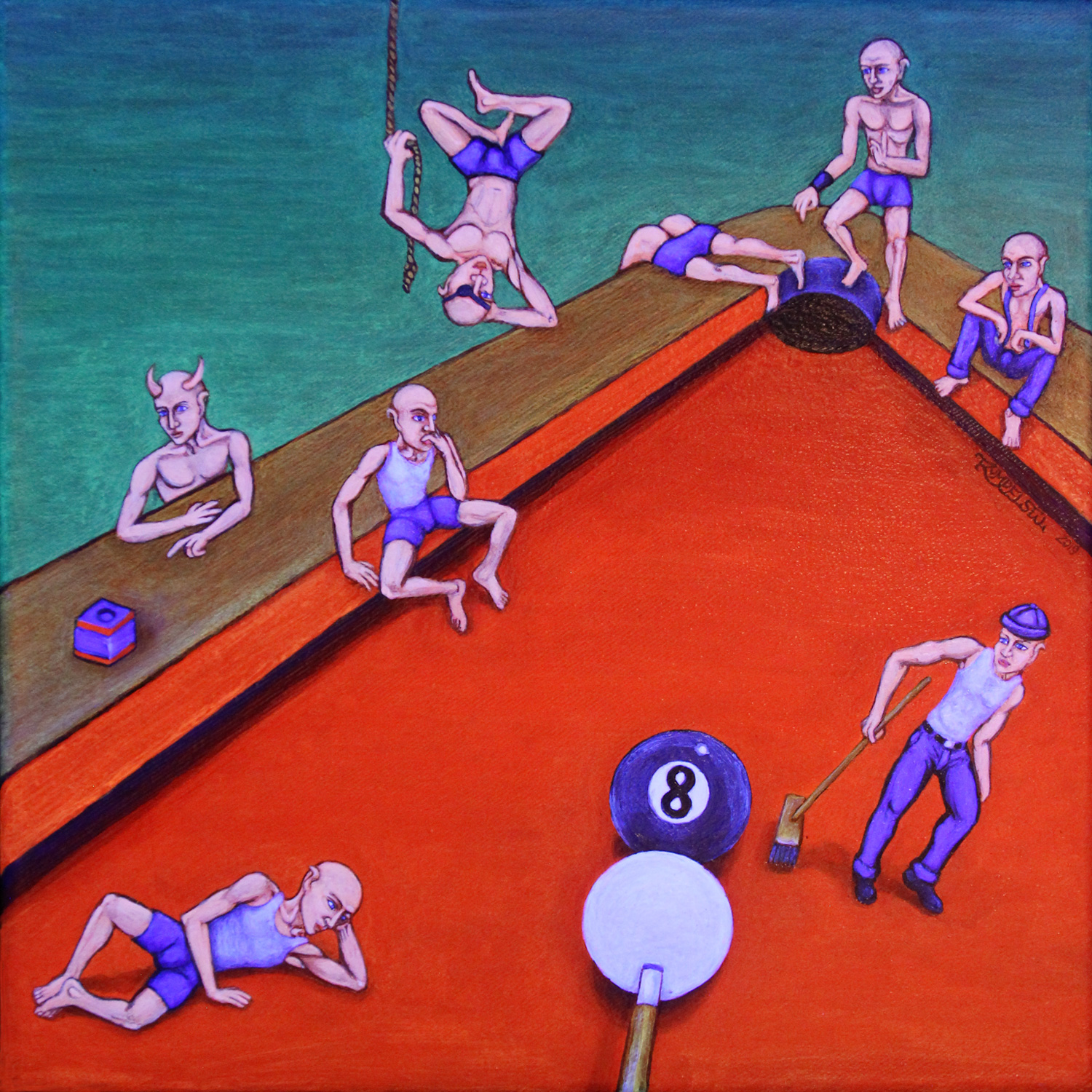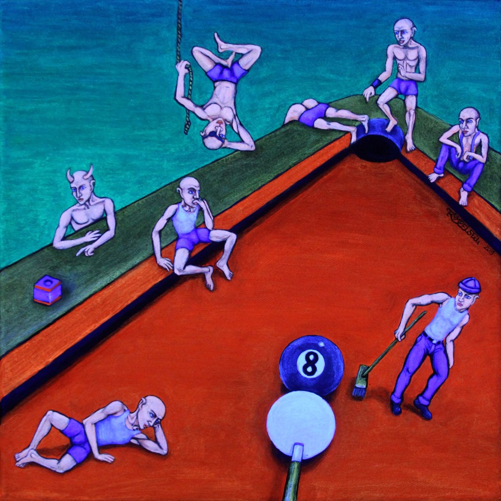 Dieses Bild habe ich schon vor Jahren begonnen. 2008 sah es bereits fertig aus. Dann habe ich aber noch die Farben überarbeitet und die weiße Kugel hinzugefügt, deren Fehlen mich doch sehr störte. Nun endlich ist es vollendet.