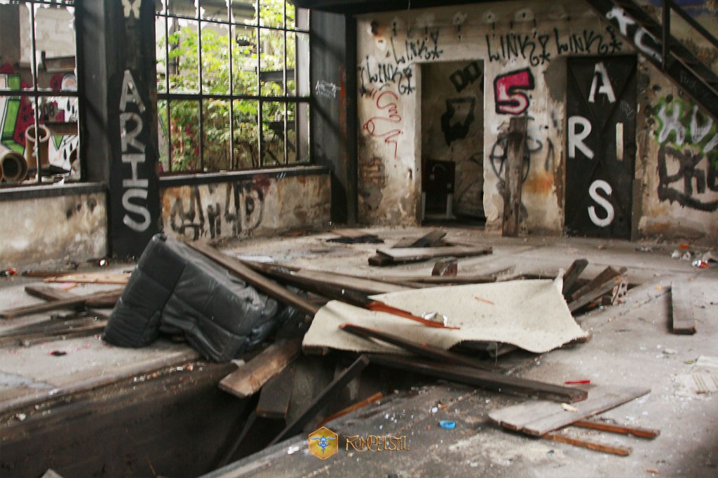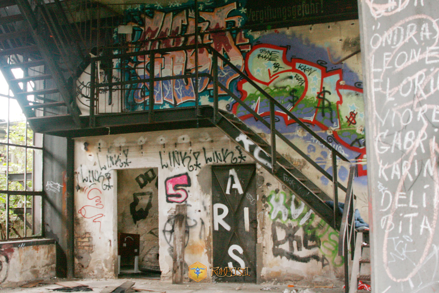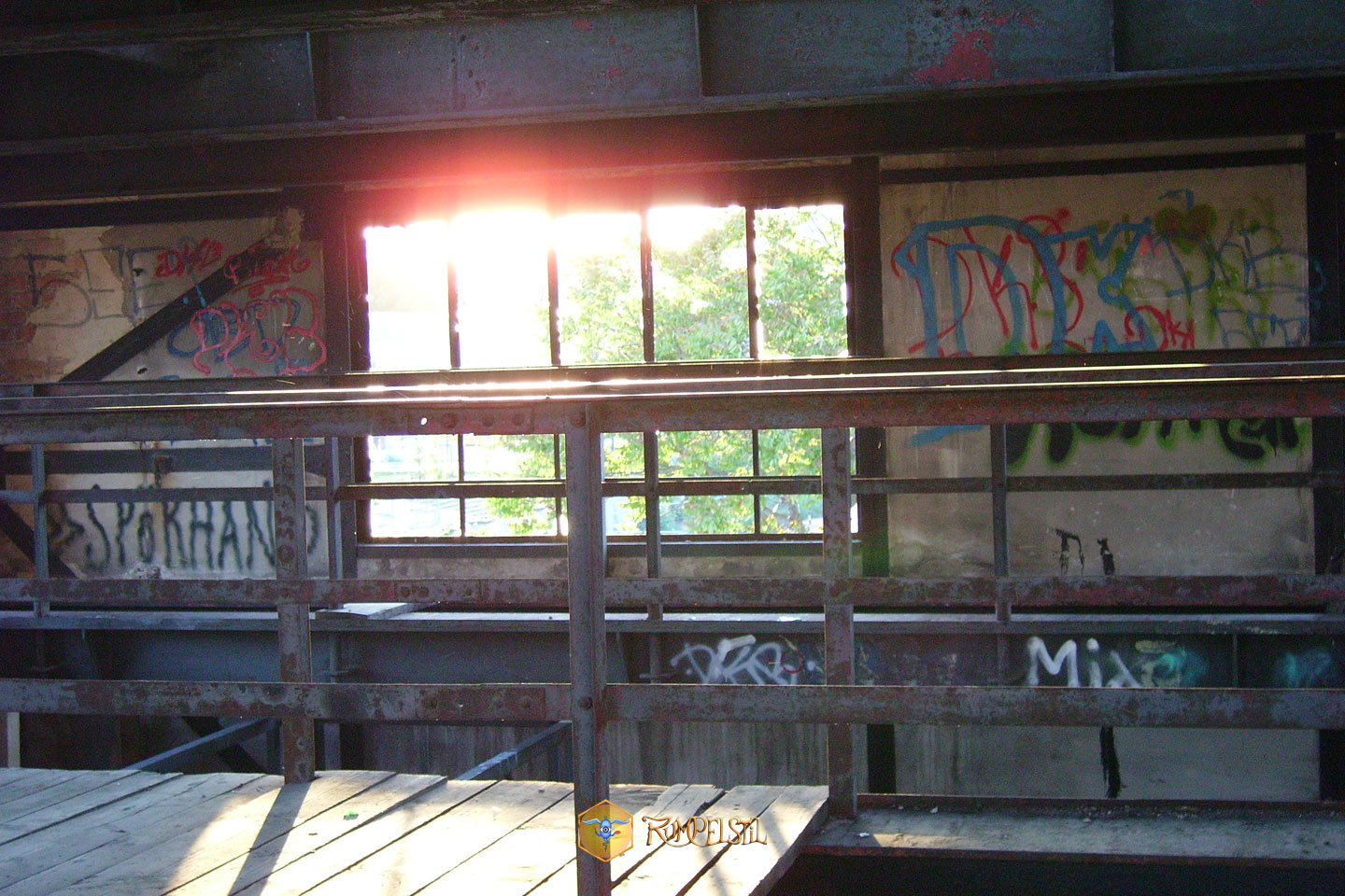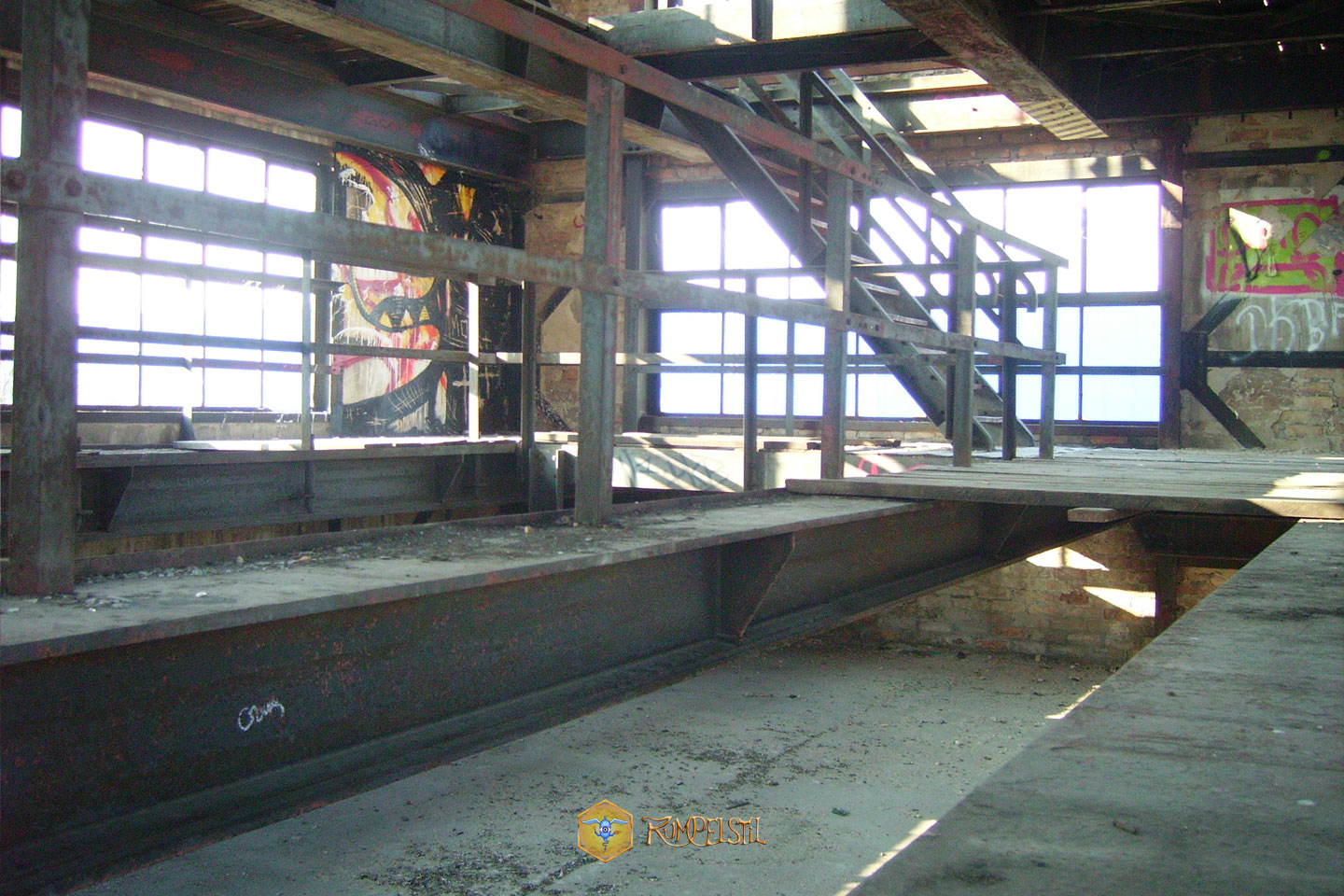 2005 entdeckte ich die Ruine des Lokschuppens (aus dem später das Nirgendwo wurde) auf dem Heimweg vom Berghain. Kein einziges Fenster des Gebäudes war intakt. Viele der Bohlen waren nicht mehr vorhanden und es wirkte im Innern als wandelte man in einem ausgeweidetem Skelett. Ich habe mich sofort in das Gebäude verliebt. Mehrmals ging ich hinein und fotografierte, meist nur mit einer kleinen Digitalkamera. In meiner Vorstellung phantasierte ich darüber, wie schön es wäre, dies als Atelier nutzen zu können – natürlich im sanierten Zustand. Als es dann 2011 saniert wurde, verlor es leider seine helle Aussenfarbe, die die Stahlstruktur des Gebäudes deutlich hervorhob.