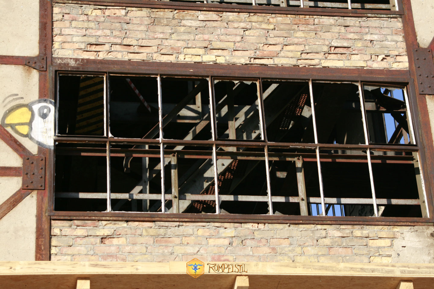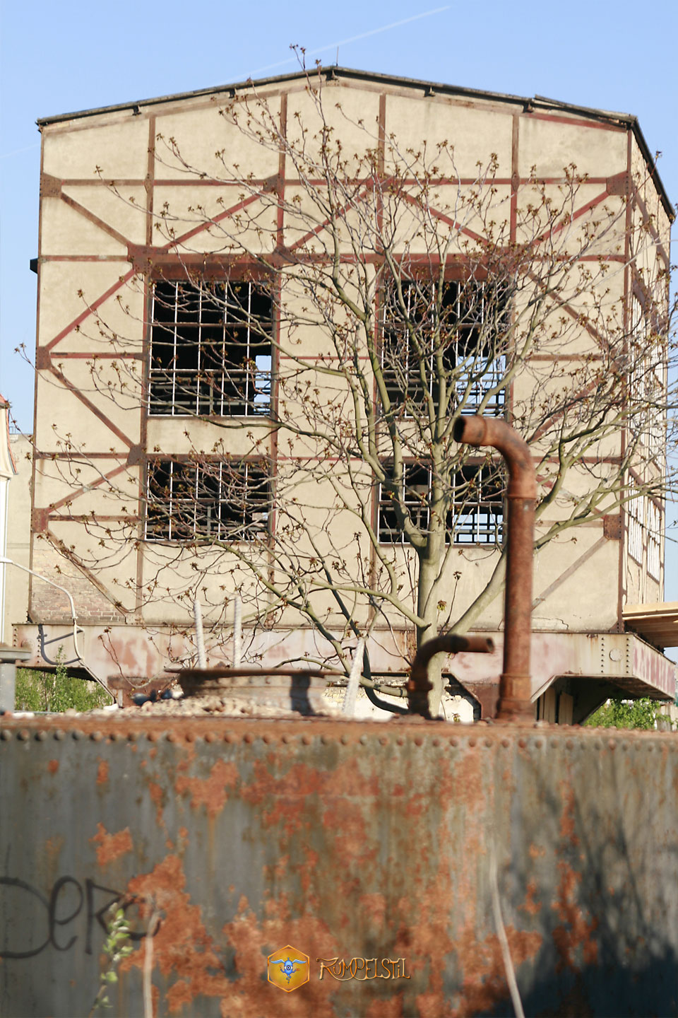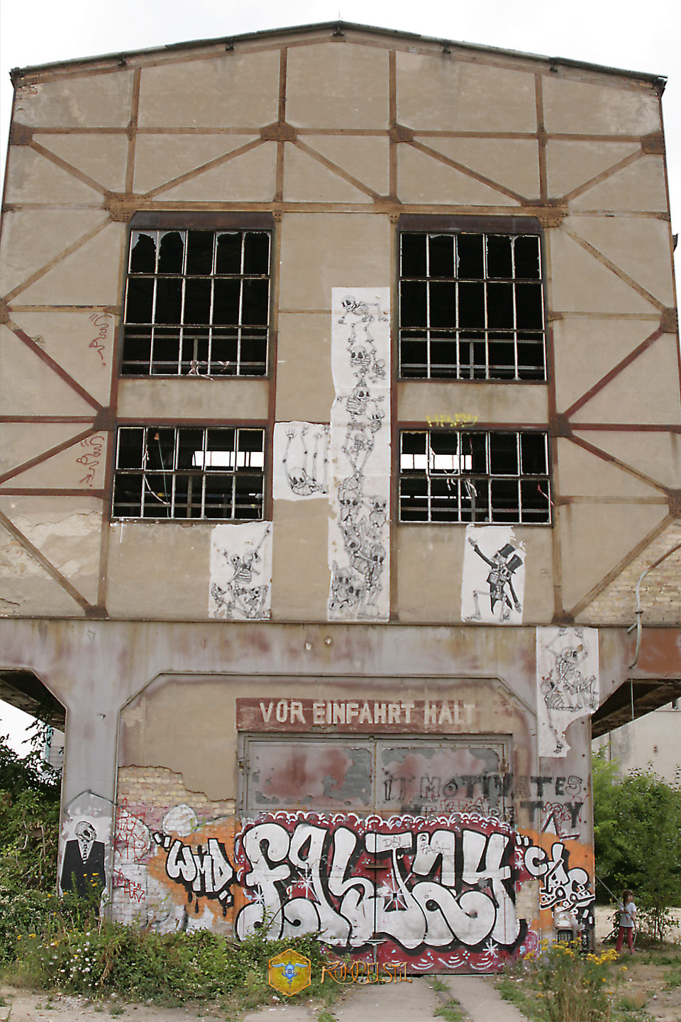 2005 entdeckte ich die Ruine des Lokschuppens (aus dem später das Nirgendwo wurde) auf dem Heimweg vom Berghain. Kein einziges Fenster des Gebäudes war intakt. Viele der Bohlen waren nicht mehr vorhanden und es wirkte im Innern als wandelte man in einem ausgeweidetem Skelett. Ich habe mich sofort in das Gebäude verliebt. Mehrmals ging ich hinein und fotografierte, meist nur mit einer kleinen Digitalkamera. In meiner Vorstellung phantasierte ich darüber, wie schön es wäre, dies als Atelier nutzen zu können – natürlich im sanierten Zustand. Als es dann 2011 saniert wurde, verlor es leider seine helle Aussenfarbe, die die Stahlstruktur des Gebäudes deutlich hervorhob.