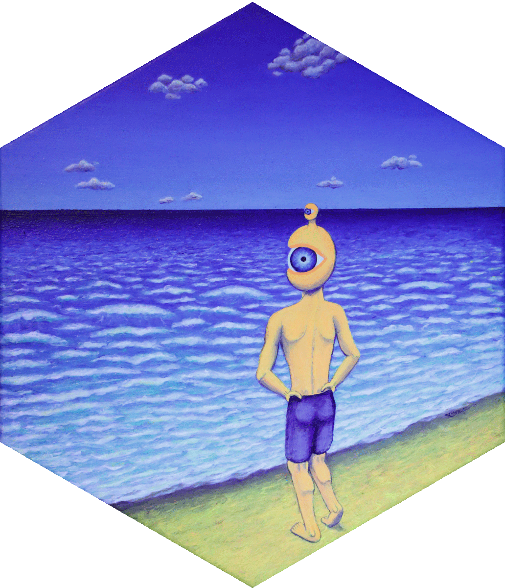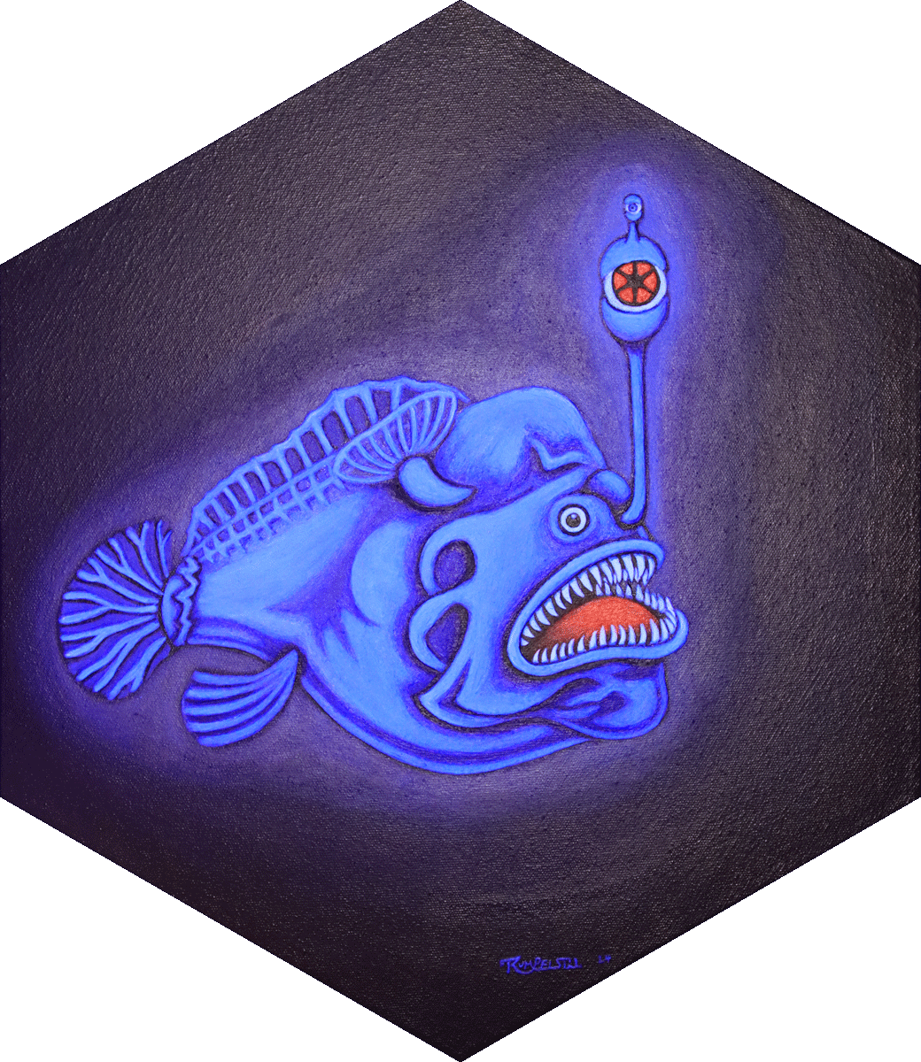 7 davon sind nicht wirklich neu, sie wurden schon in der Kreaturen-Ausstellung gezeigt. Das Anglerfisch-Auge ist dagegen frisch von der Staffelei und auch schon verkauft.